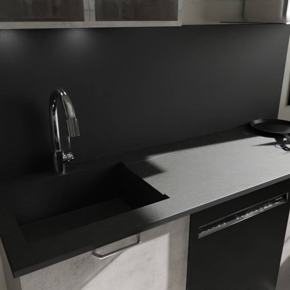 1 Plan minéral avec bac (monobloc) avec vidage automatique (perçages inclus)