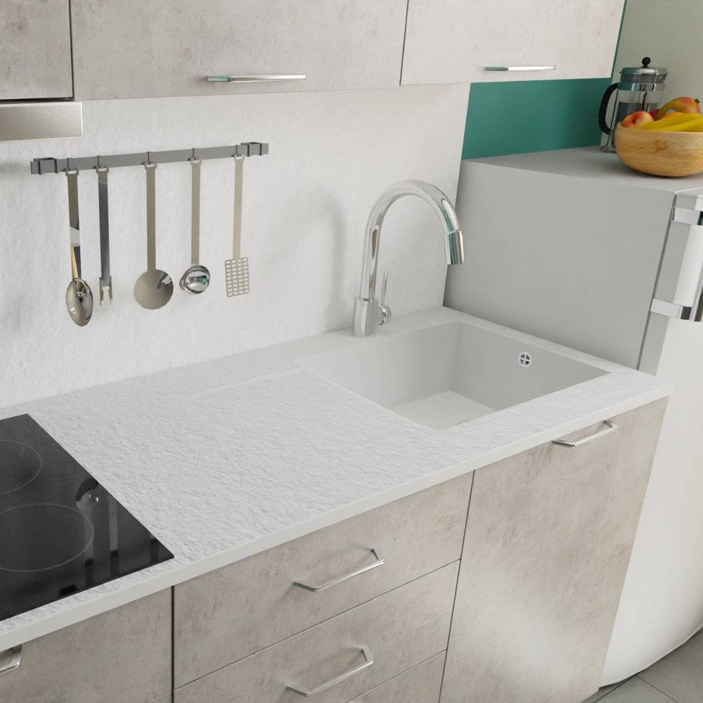 1 Plan minéral avec bac (monobloc) avec vidage automatique (perçages inclus)