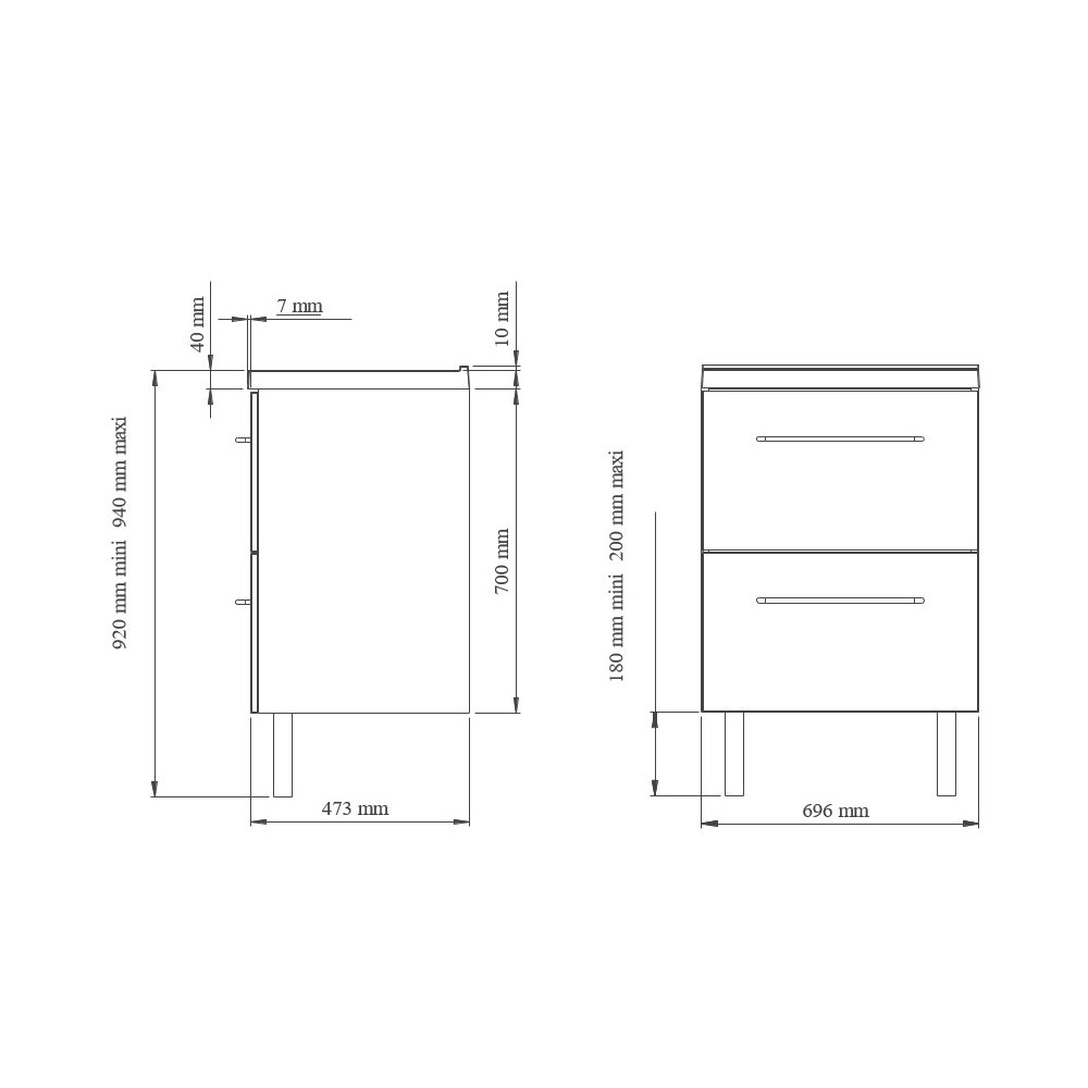 Concept plan vasque + meuble tiroirs LUNEA 70 cm