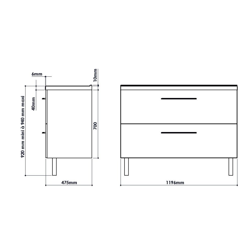 Concept plan vasque + meuble tiroirs LUNEA 120 cm